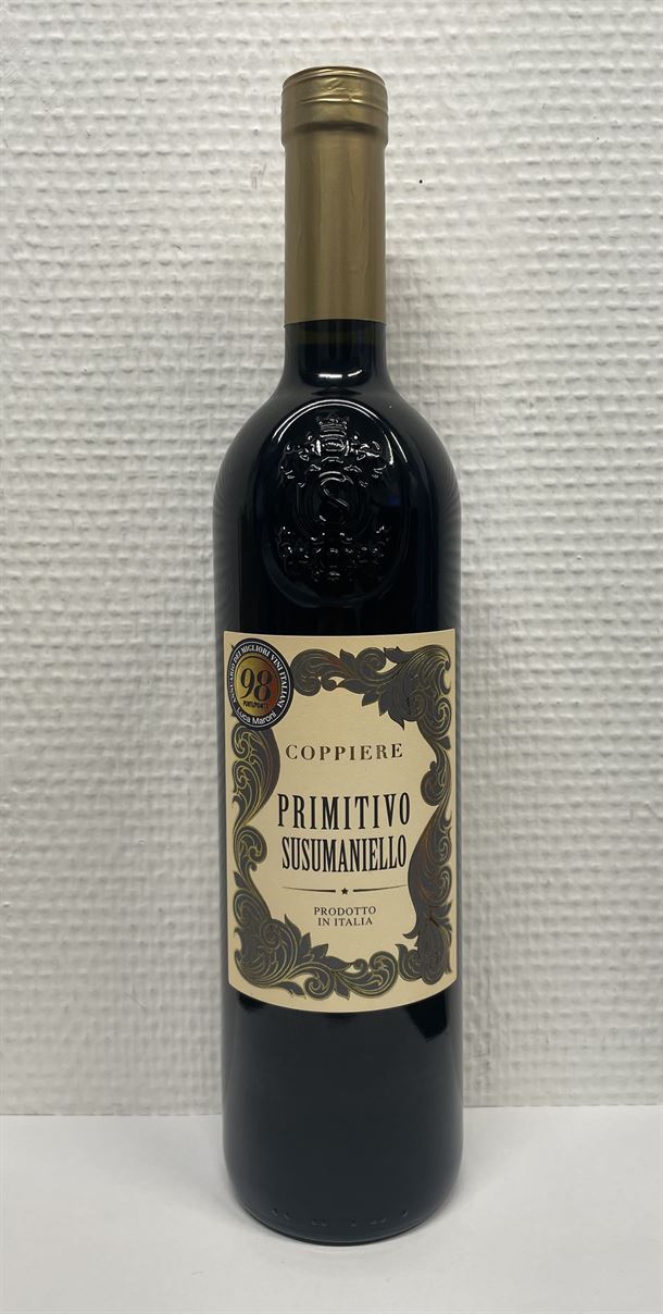 Brygget på primitivo og susumaniello druer, som vinen får sit navn fra. 2024's bedst anmeldte vin, med en
